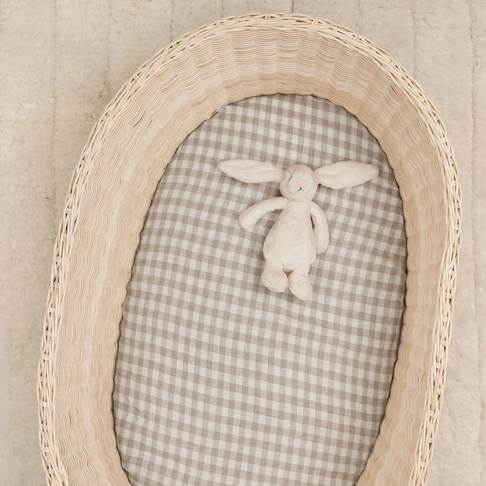 Bassinet Sheet in Beige Gingham woven from European Flax® grown in France and stonewashed to give you that soft, ready-to-sleep-in feel, our 170GSM, OEKO-TEX® STD 100 certified bassinet sheet is also dyed using non toxic dyes. Sleep easy as they sleep too, because natural fibres are always better.