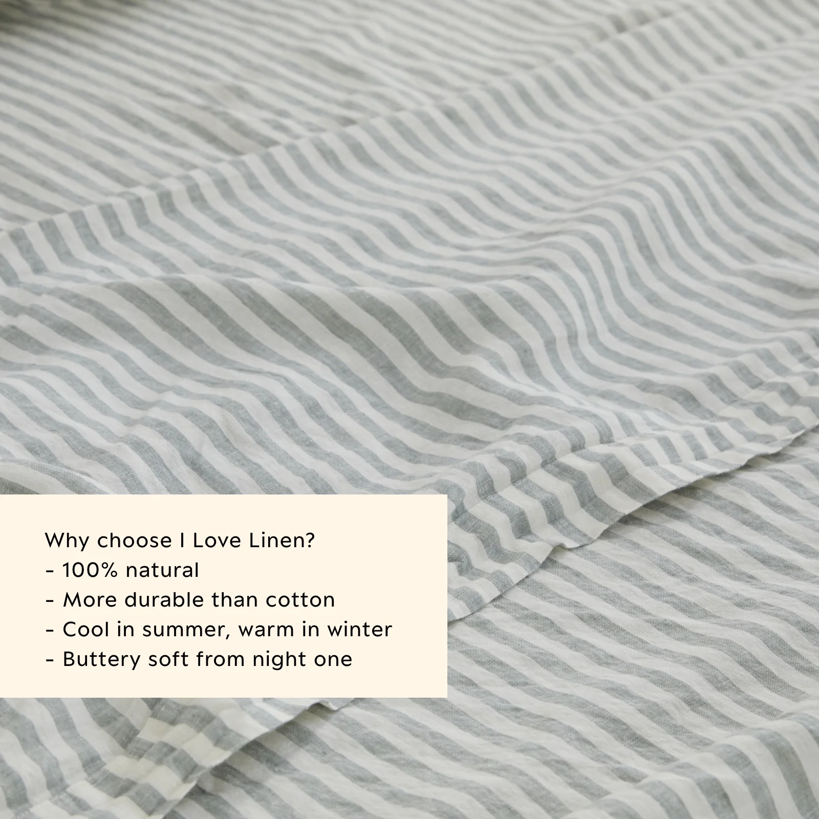 While we donât claim to hold all the answers to eternal happiness, we do genuinely believe that if you sleep well you will live well and enjoy The Good Things in Life. So, we truly advocate our beautiful French linen that will have you waking up happy, ready to enjoy all your other life enriching pursuits as you go about your day.