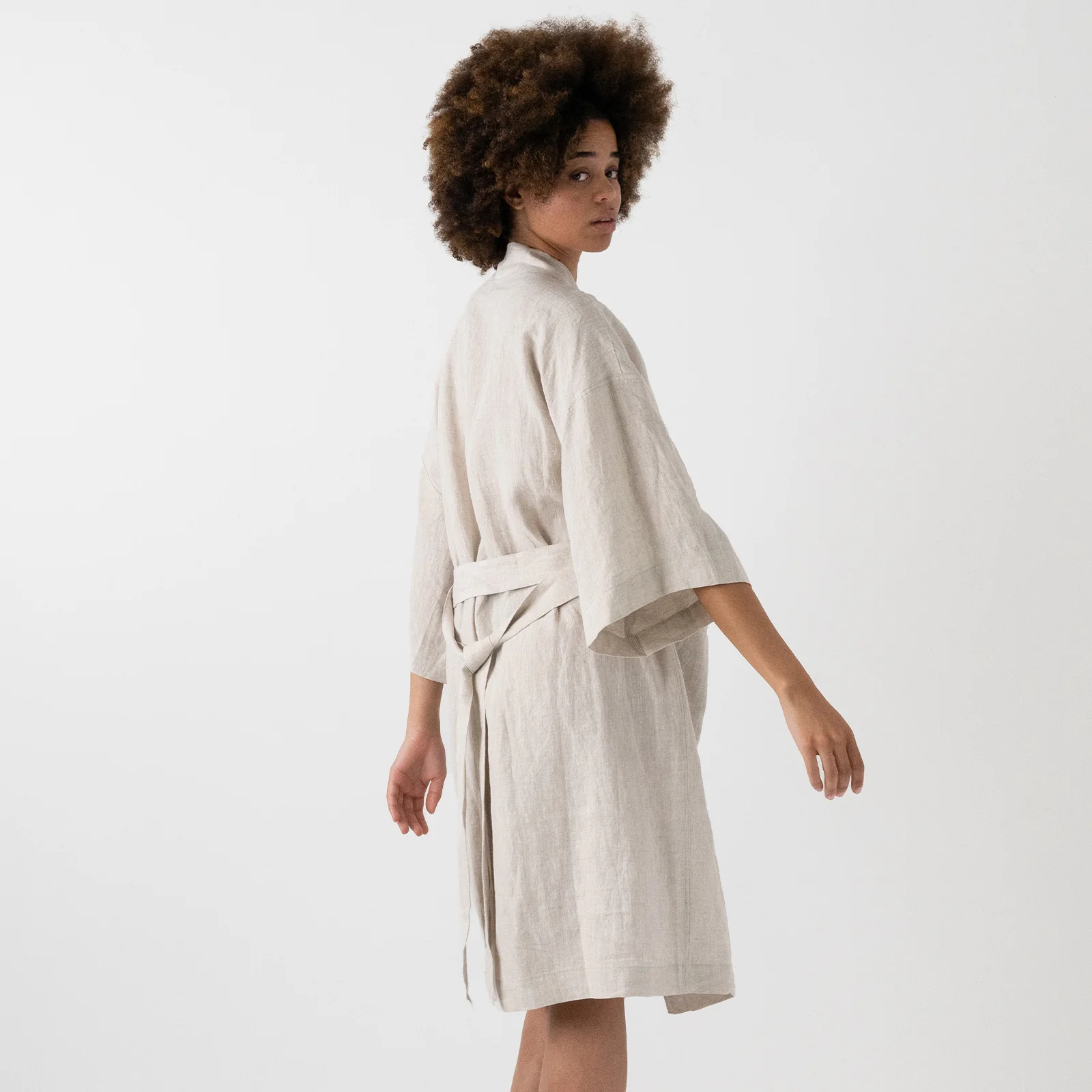 Indulge yourself in our timeless French linen Robe in Natural. This kimono inspired design with loose flowing linen and divinely graceful sleeves is a must-have addition to your everyday self-care ritual and capsule wardrobe. Designed with sustainability in mind, all of our 170GSM, OEKO-TEX® STD 100 certified linen robes are dyed using non-toxic dyes and shipped to your plastic free. We produce our pieces in minimal quantities to meet demand, and have designed them to be timeless, staple pieces to withstand trends and encourage slower consumption habits.